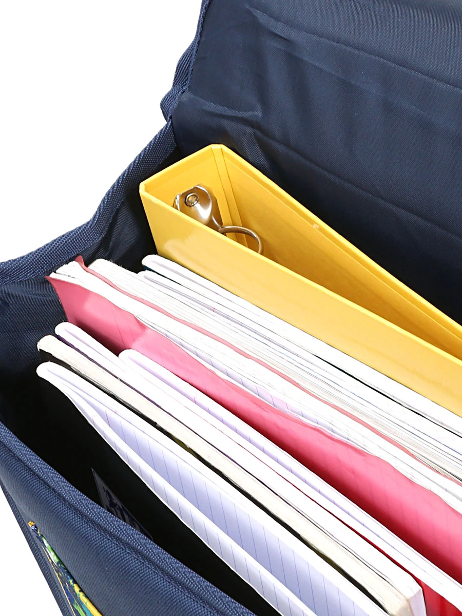 Pourvu de deux compartiments, le cartable garçon Philéas Wild Dino Roar permet de ranger avec soin ses affaires en les séparant par exemple selon les matières. Il accueille notamment les manuels, les cahiers et classeurs de formats A4 et 24 x 32 cm, l’agenda et la trousse. Pour les petits trésors les plus précieux, une poche zippée est aménagée à l’intérieur. Une plus grande poche ouverte cousue sous le rabat permet de garder à portée de main le paquet de mouchoirs et de quoi se restaurer et jouer pendant la récréation.