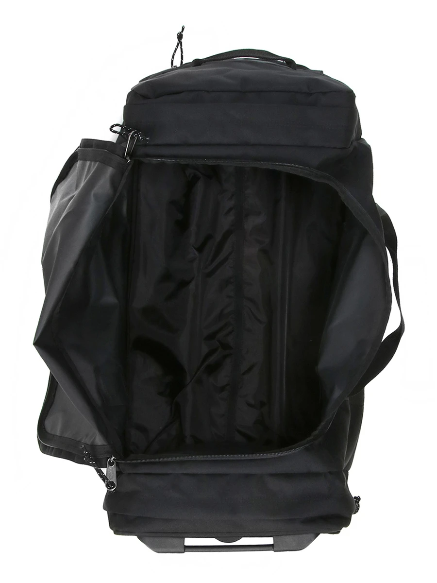 En effet, le sac de voyage à roulettes Eastpak Leatherface dispose de deux roulettes silencieuses et d’un trolley ajustable double tube, pour vous assurer un vrai confort durant vos trajets. La poignée télescopique se range discrètement lorsqu’elle n’est pas utilisée. Afin de le déplacer rapidement et de le poser à l’horizontal notamment dans le train, il dispose d’une double anse en polyester renforcé sur le dessus. Il se ferme à l’aide d’un double curseur auquel il est possible d’ajouter un cadenas pour encore plus de sécurité.